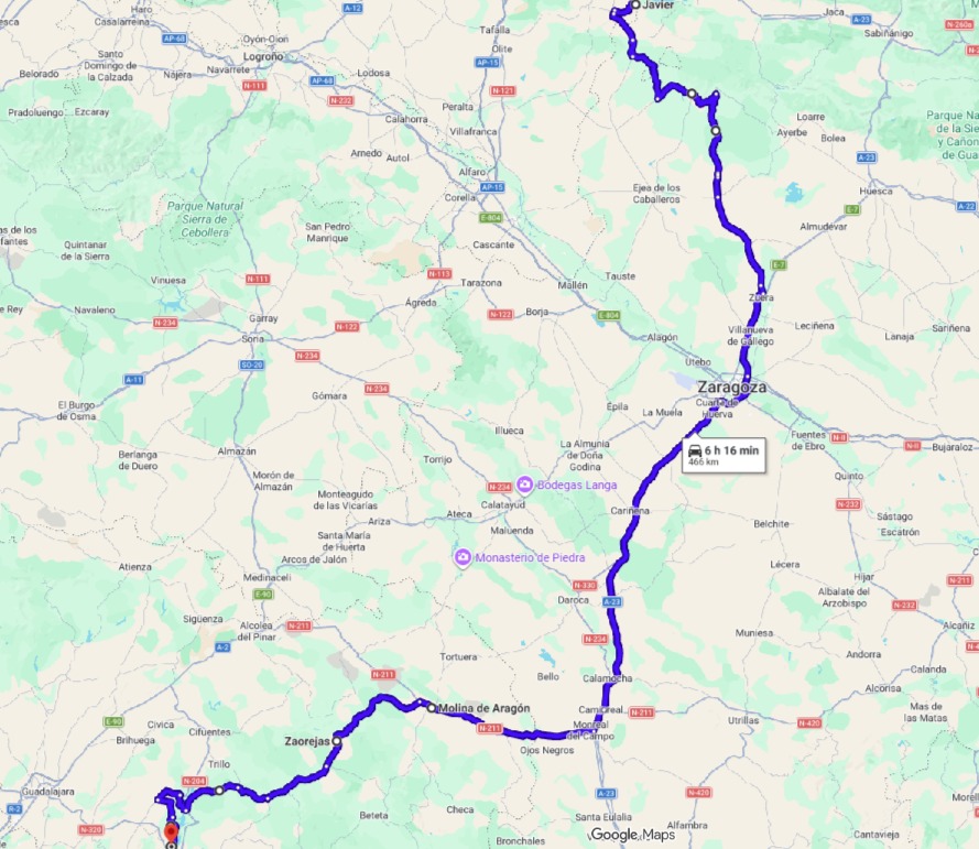 La Travesia comienza con la reunion y Briefing a las 10.00H en la BP que se encuentra pasada la Universidad Autonoma de Madrid,  antes de Tres Cantos. Tomariamos ruta cuanto antes por la M607 direccion Guadalix de la Sierra y por la M626 Hacia Miraflores de la sierra, La Morcuera,  Lozoya y Navafria. A continuacion enlazando con la N110,  hasta San Esteban de Gormaz, El Burgo de Osma, Ucero y haciendo una parada en Molinos de Duero para realizar un Picnic. Sin demorarnos mas, retomamos la marcha por Vinuesa y discurriendo por el Parque Natural de Sierra de Cebollera,  por la N111 para acercarnos a Logroño. En este punto nos desviamos por la A12 direccion Pamplona, y disfrutar del final etapa por la N121A, llegando al Hostal Venta de San Blas.