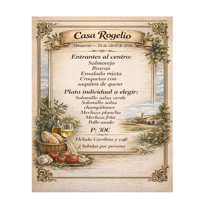 Comida: Restaurante Rogelio, PosadasCoste menú: 30 euros. 2 bebidas incluidas.