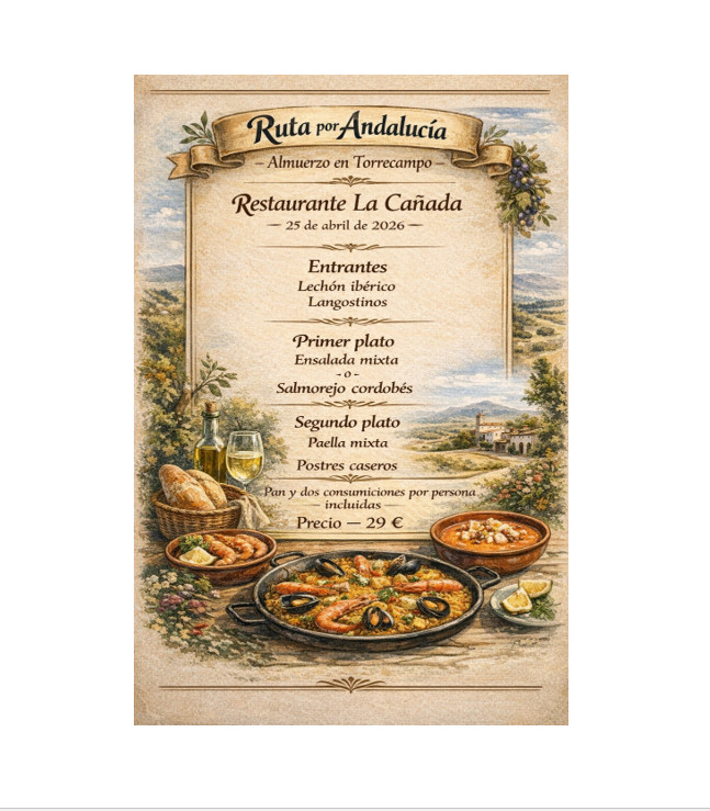 Comida fin de ruta: Ermita Madre de Dios, Úbeda. Coste menú: 45 euros, 2 bebidas incluidas