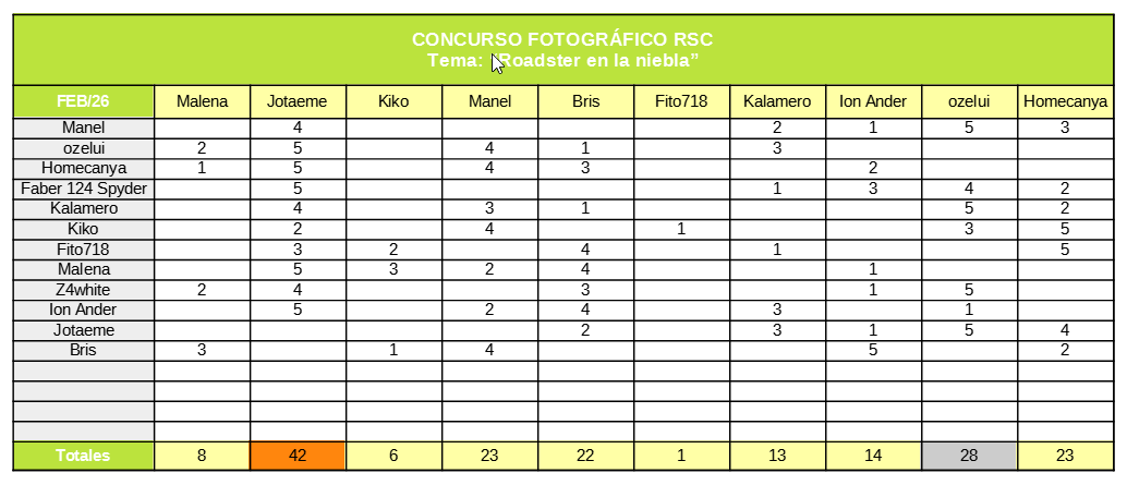 * Pueden votar todos los usuarios del foro con status "Socio RSC", indistintamente de si han participado en el concurso o no.