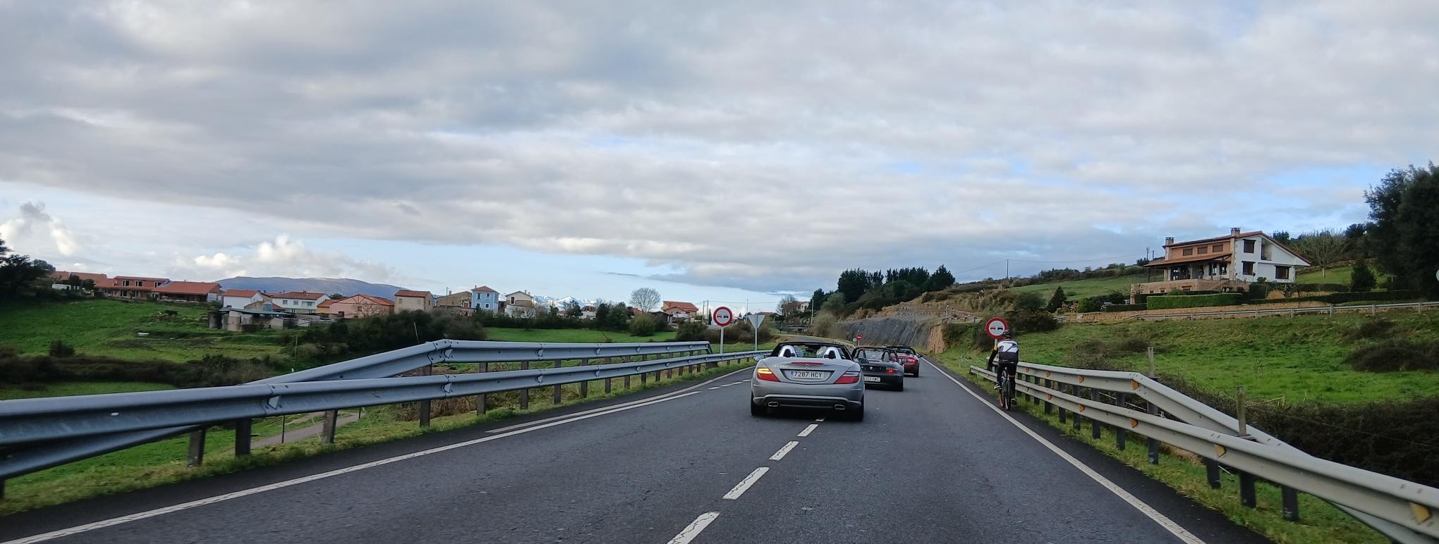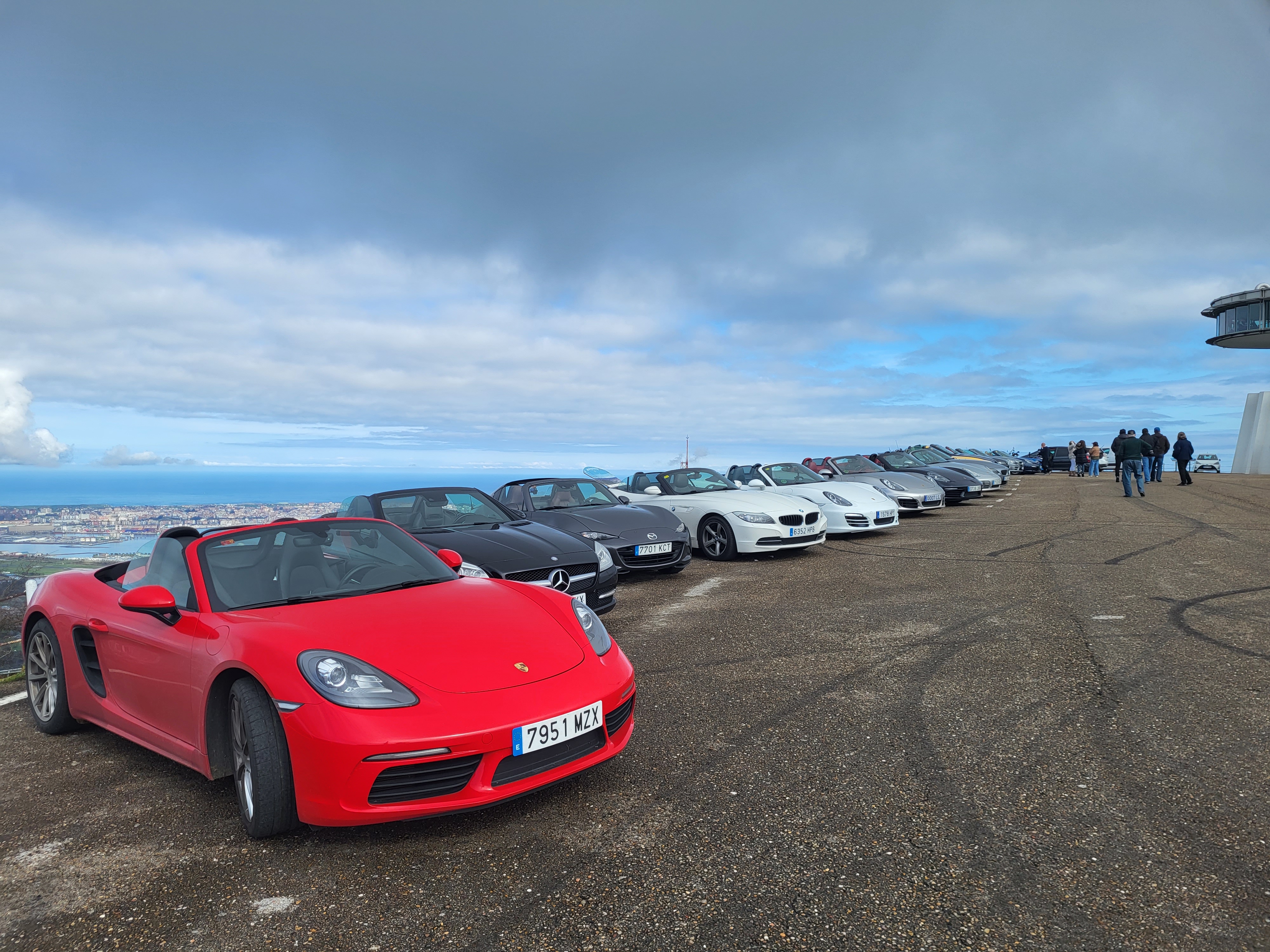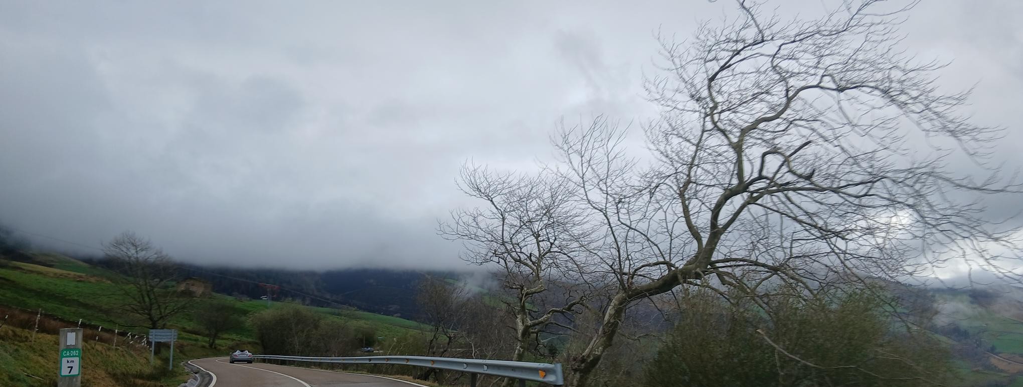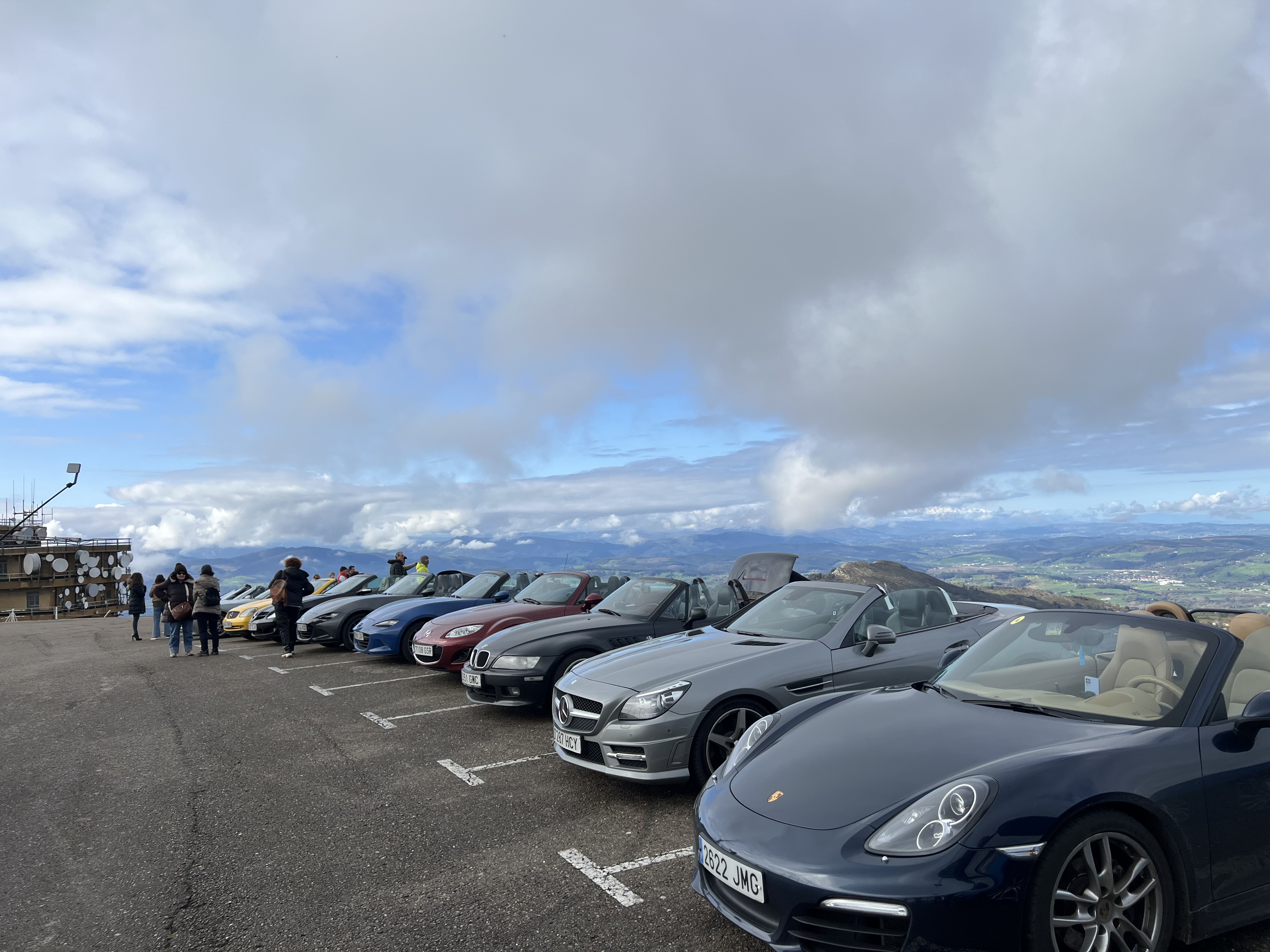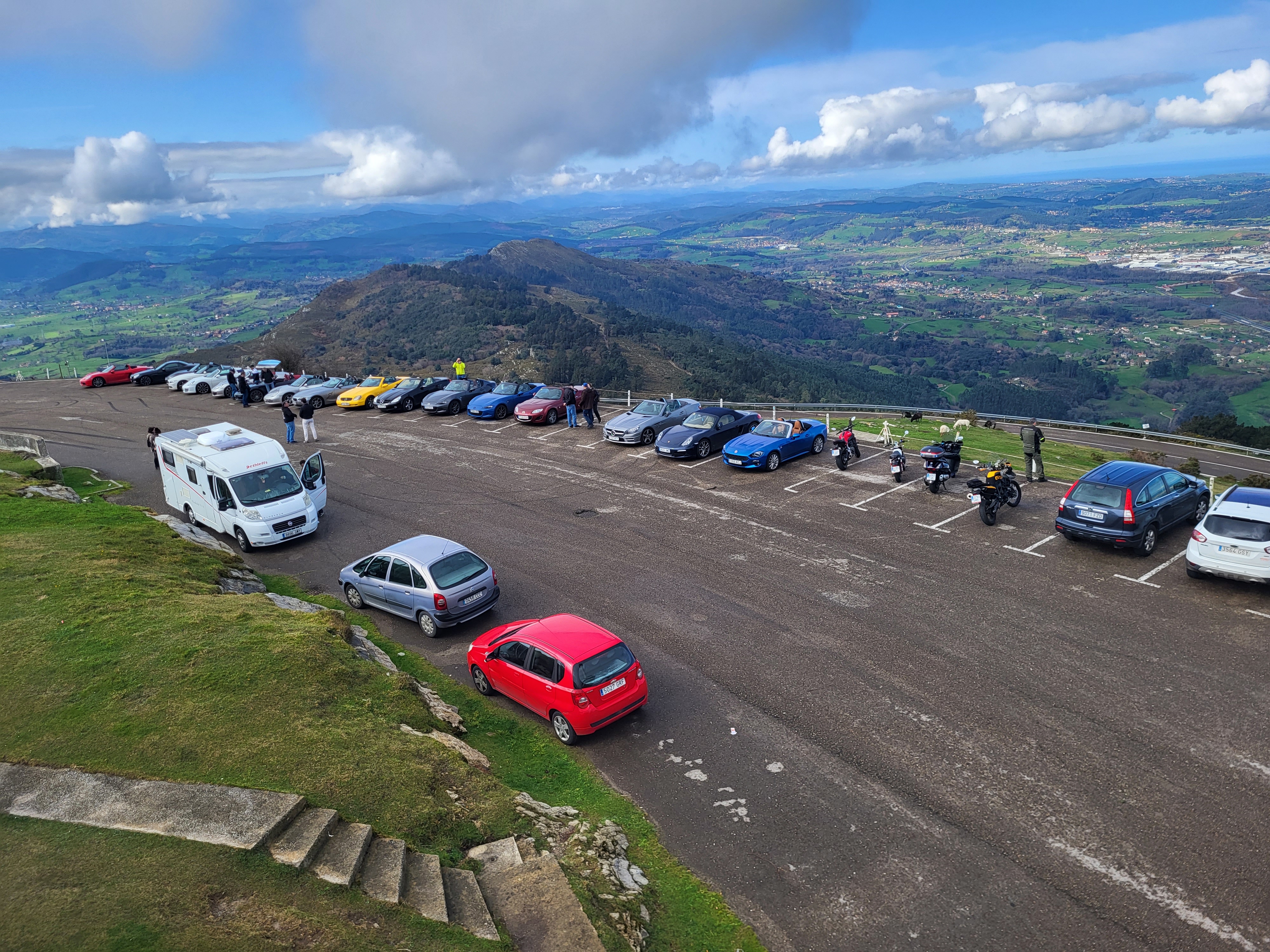 El domingo amaneció mucho más claro, y tras el desayuno y un breve briefing donde dimos la bienvenida al rookie Ángel y su MX5, pudimos comprobar que nuestro amigable gato no había hecho compañía nocturna en esta ocasión a nuestros vehículos, por lo que salimos dirección a Peña Cabarga, que era nuestra primera parada, pasando por el alto de Hijas, la Vega de Pas y el alto de la Braguia. La ruta nos ofreció unas curvas infinitas y unos paisajes a cuál mejor, con el aliciente de que esta vez sí pudimos rutear a cielo abierto.