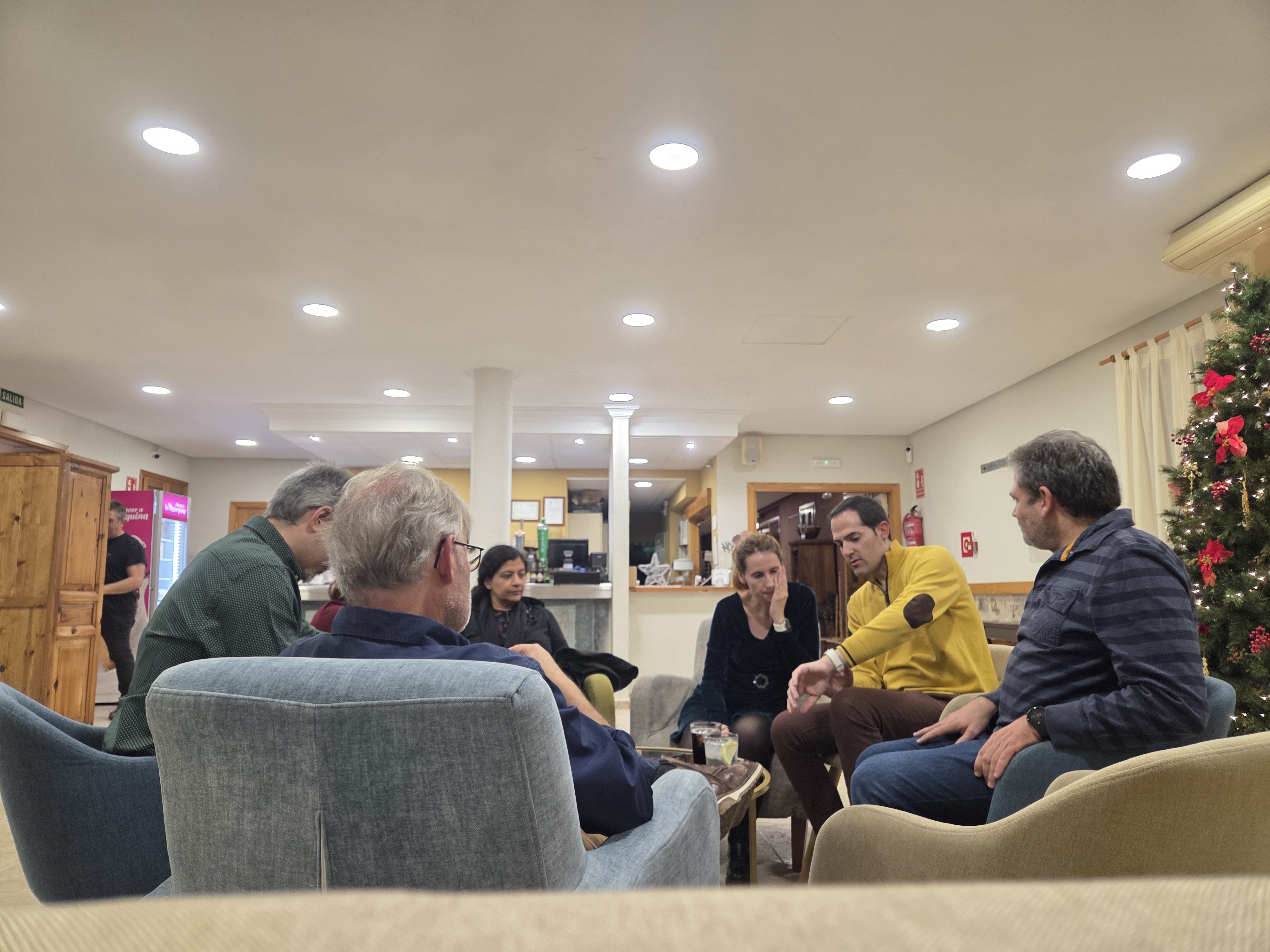 Ya después de la cena y la posterior vergüenza que me hacéis pasar año tras año en el discurso del aniversario (no soy yo muy de discursos ya lo habréis notado....), nos tomamos unas copas.... y manda narices que, explicándole a Gema cómo funciona la toma de fotos usando el Galaxy Watch 7, puse el movil de forma aleatoria para explicarle, y no se nos ocurriese, tiendo ya el movil en posición, hacernos una foto todos los allí presentes