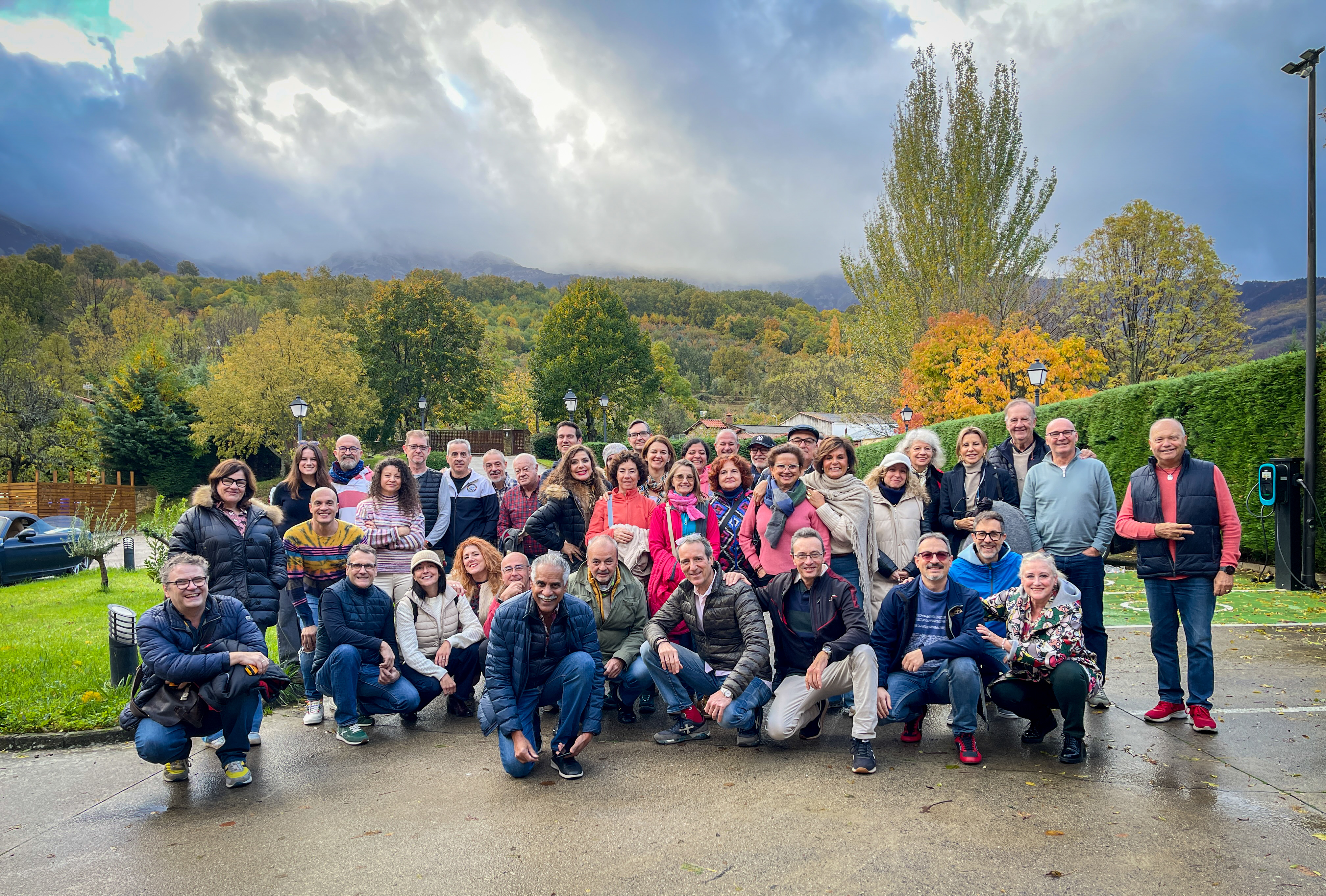 La ruta no podía ser más maravillosa: carreteras sinuosas entre árboles de un color otoñal, cascadas, curvas, subidas, bajadas y… el ambiente que caracteriza este club. La parada café fue una carrera del coche a la cafetería para mojarse lo menos posible.