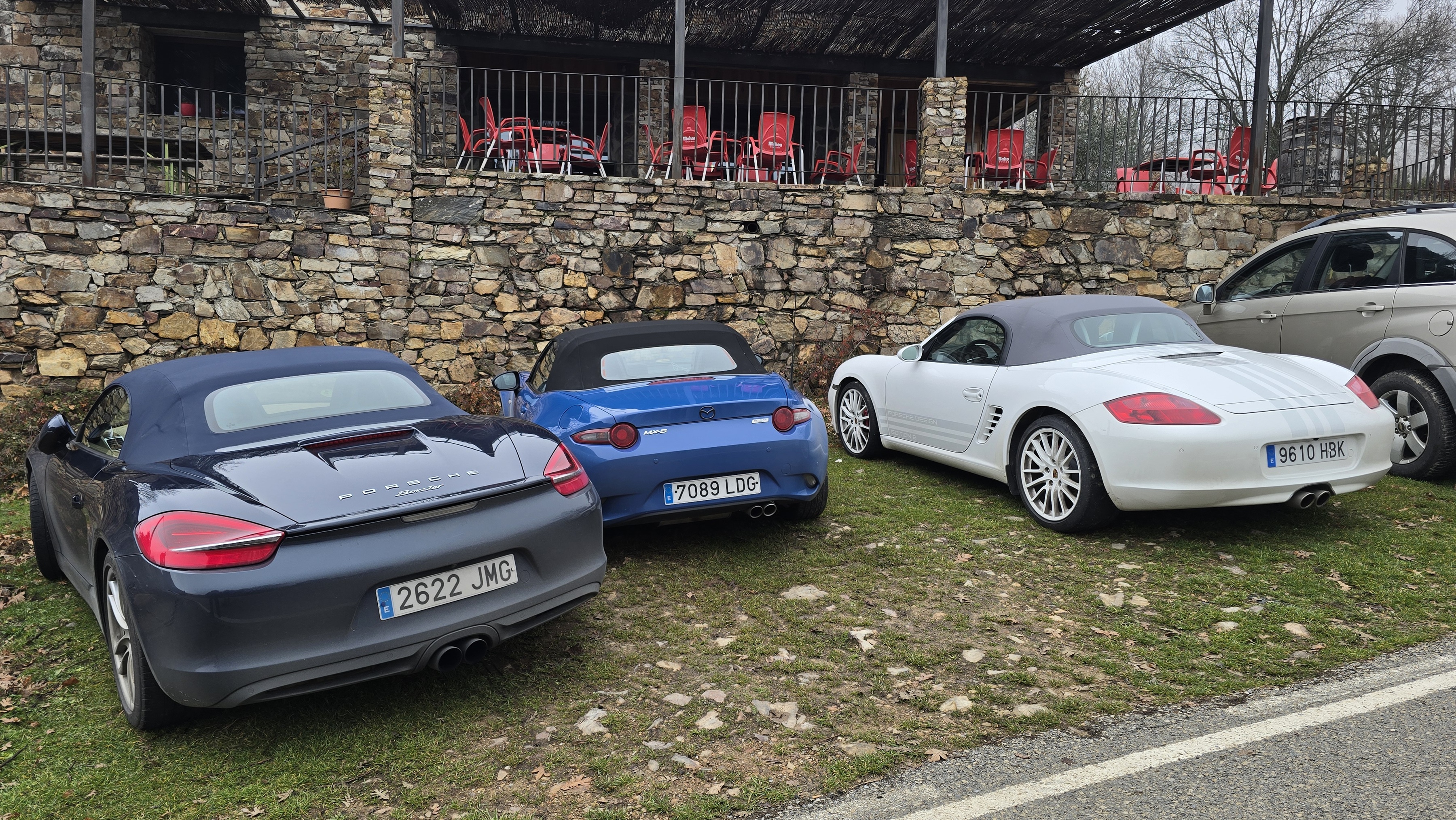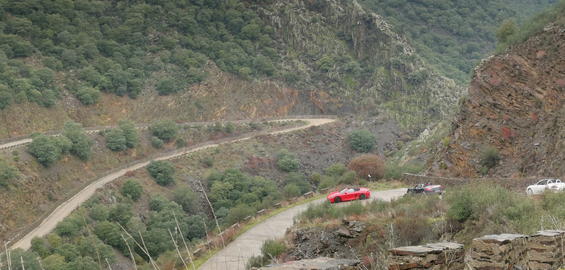 Pese a que el tiempo era lluvioso, nos dio una tregua y permitió ir descapotados toda la ruta hasta justo el enlace por autopista para llegar al restaurante.
