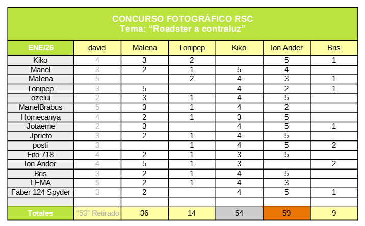 Votaciones Concurso Fotográfico Enero/26, "Roadster a contraluz" por @ozelui