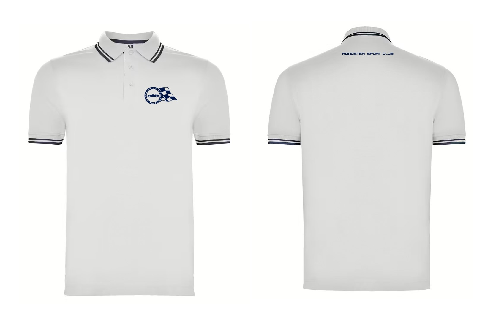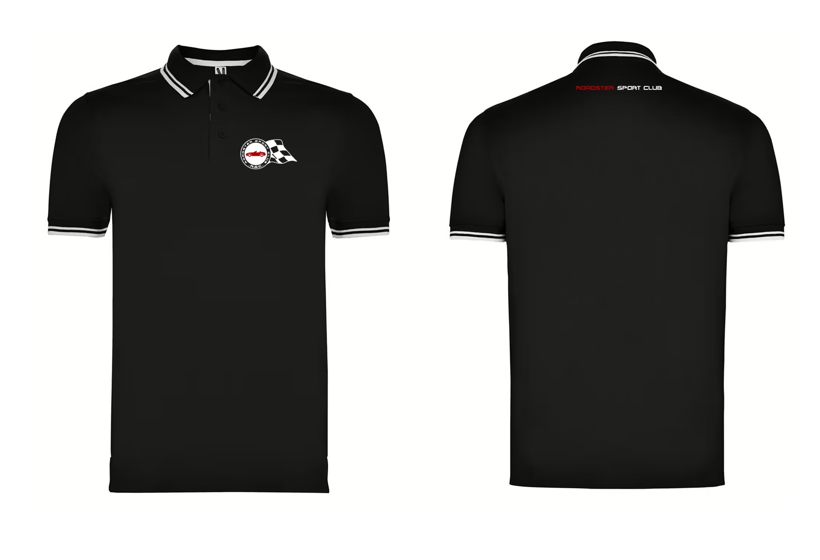 Los Polos, Chalecos y Softshell, incluyen 2 bordados. Uno en el pecho con el logotipo del Club, y otro debajo de la nuca con "ROADSTER SPORT CLUB". El cual sustituye al antiguo "roadstersportclub.com".